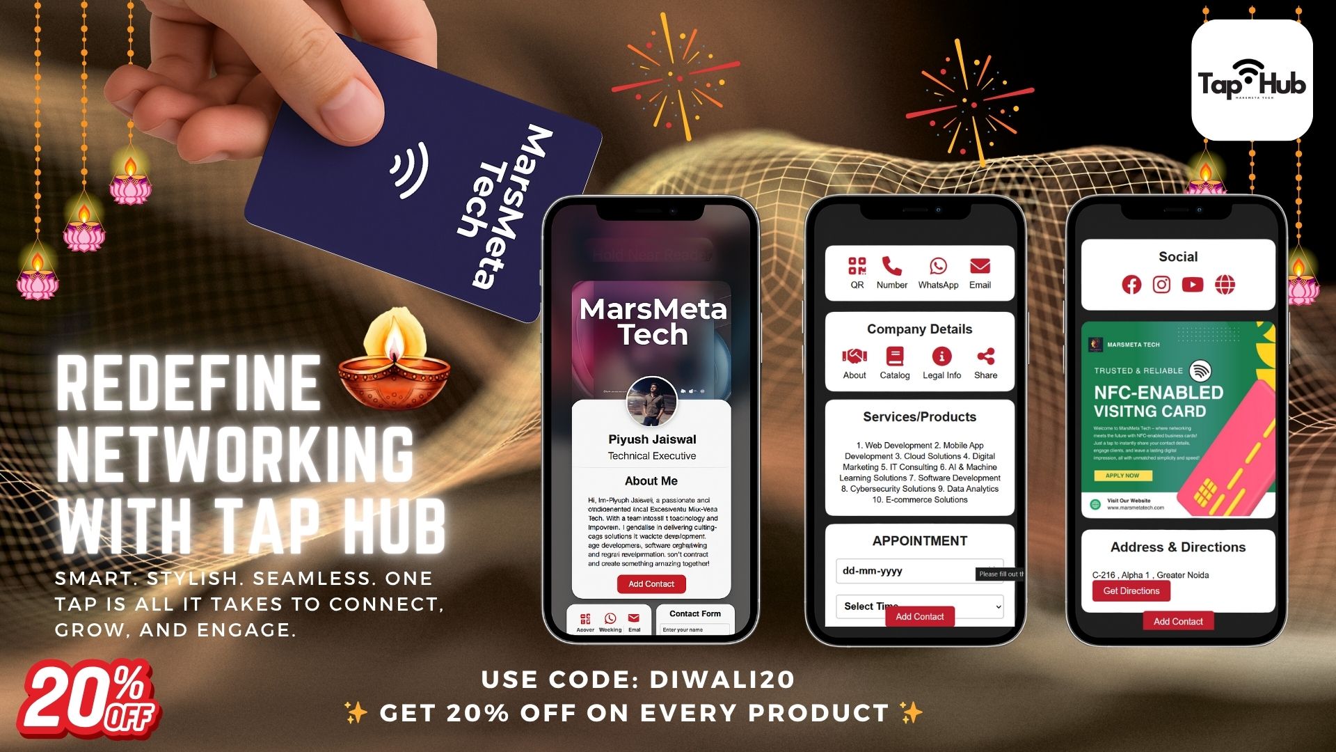 Revolutionize the way you network with just a tap! Instantly share your contact info, social profiles, portfolio, or website — no app needed. Designed for entrepreneurs, freelancers, and executives who want to leave a high-tech impression in seconds.