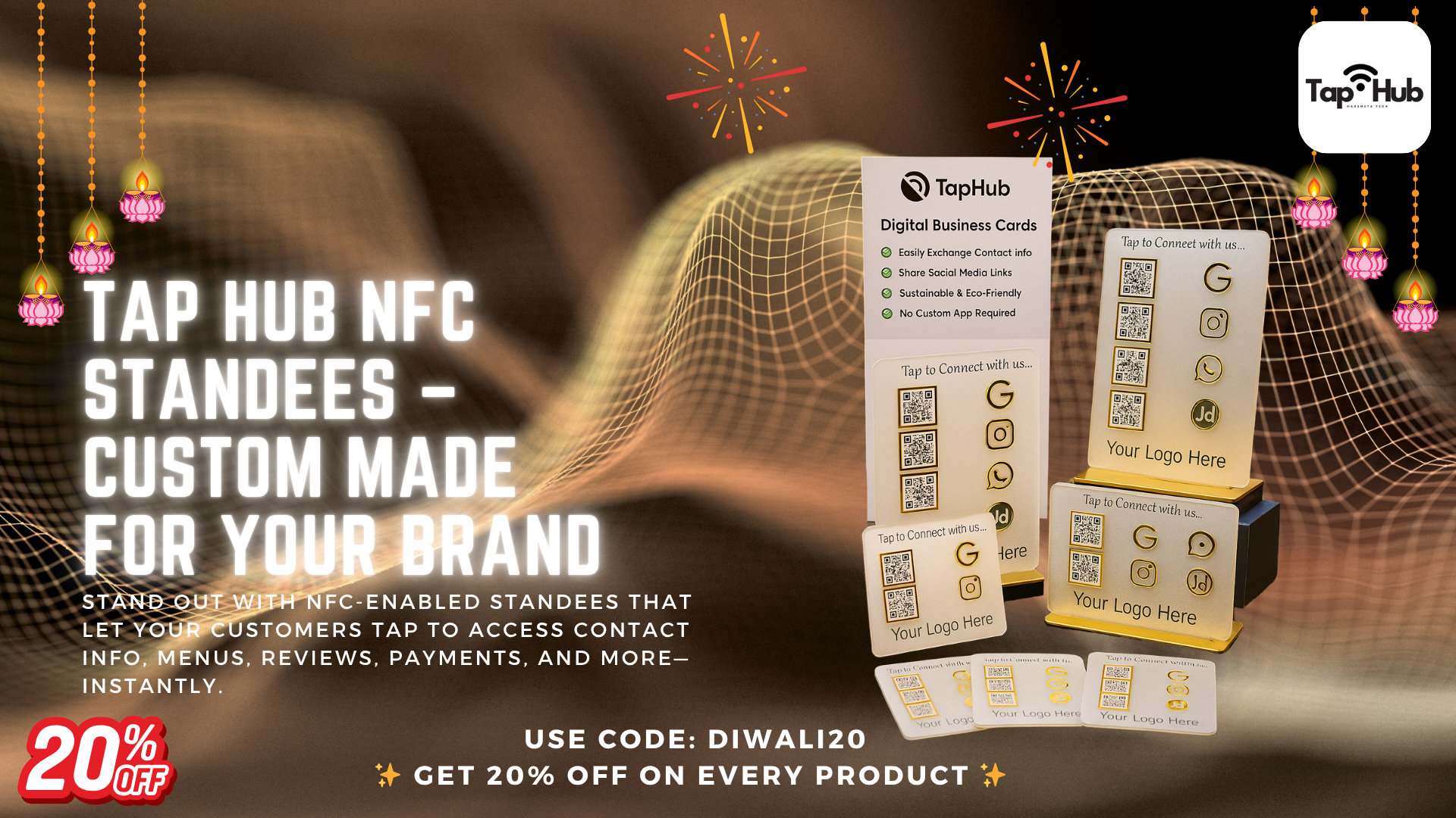 Your digital hub, in one sleek standee. Showcase your WhatsApp, Instagram, UPI payment options, Google reviews, website, and more — accessible via QR code and NFC tap. Built for high-traffic spots like salons, retail shops, restaurants, cafés, exhibitions, and event stalls, it’s the ultimate tool for effortless digital engagement and customer connection.